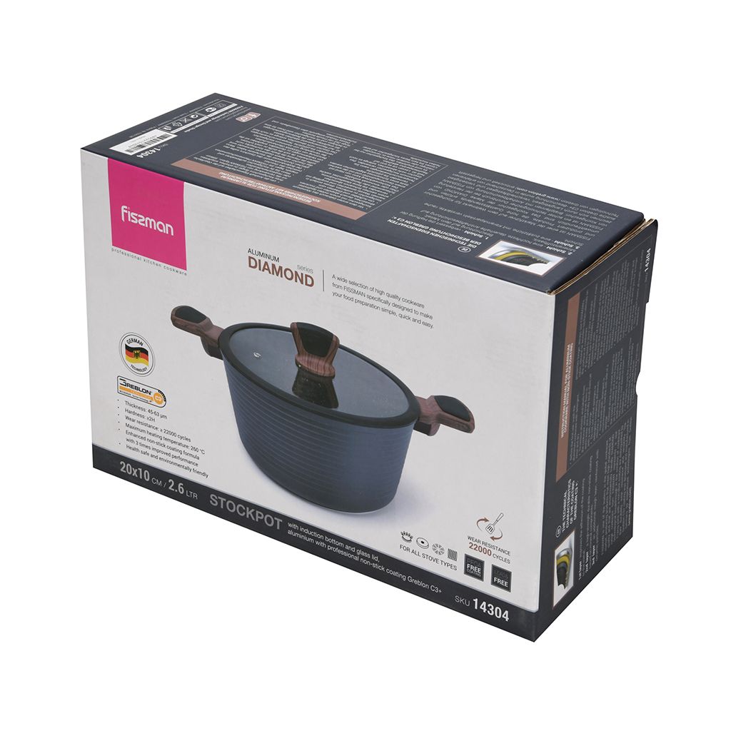 Кастрюля DIAMOND 20x10см / 2,6л со стеклянной крышкой (алюминий)