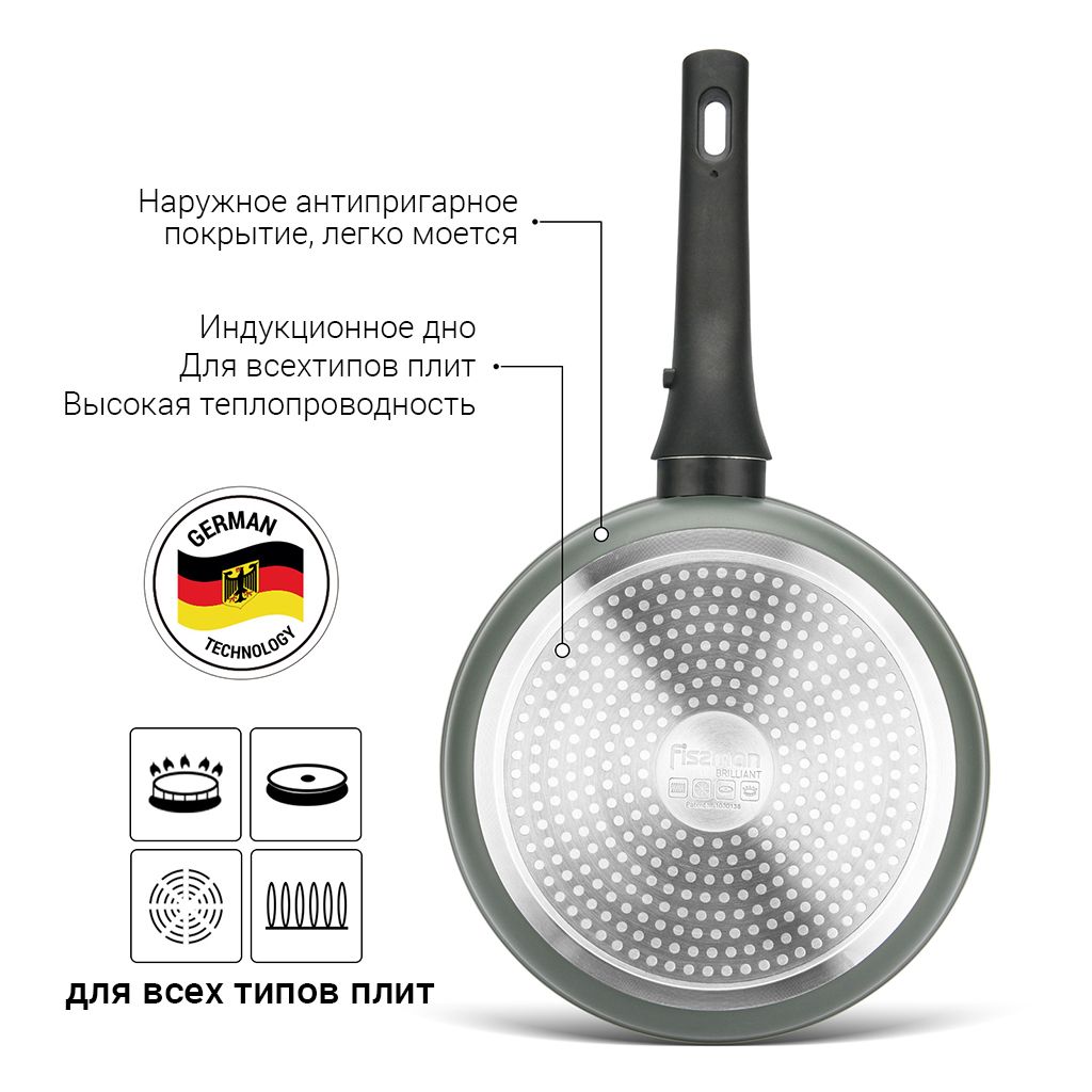• Индукционное дно подходит для всех типов плит, имеет высокую теплопроводность