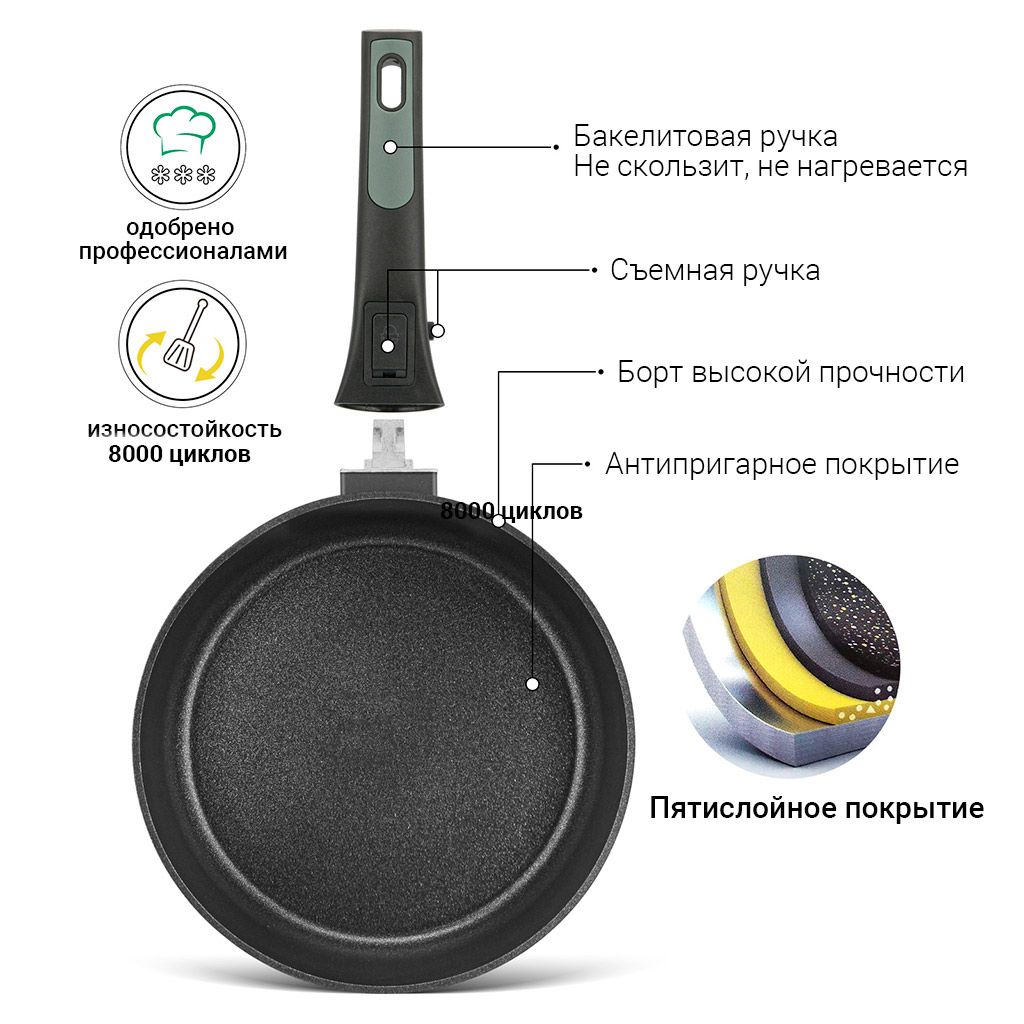 • Съёмная ручка, удобная кнопка - можно использовать в духовке, удобно хранить