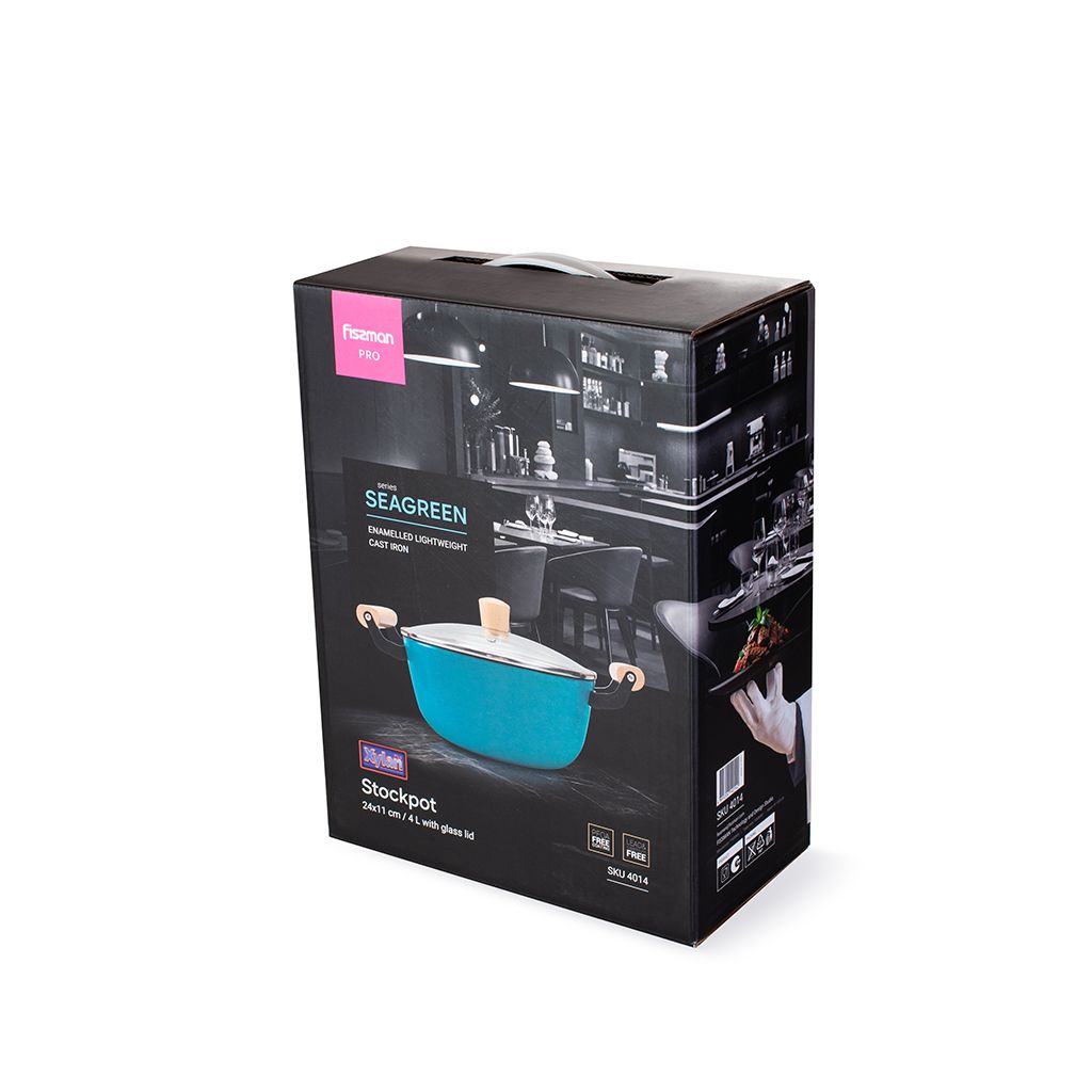 Кастрюля SEAGREEN 24x11см / 4л. со стеклянной крышкой (эмалированны