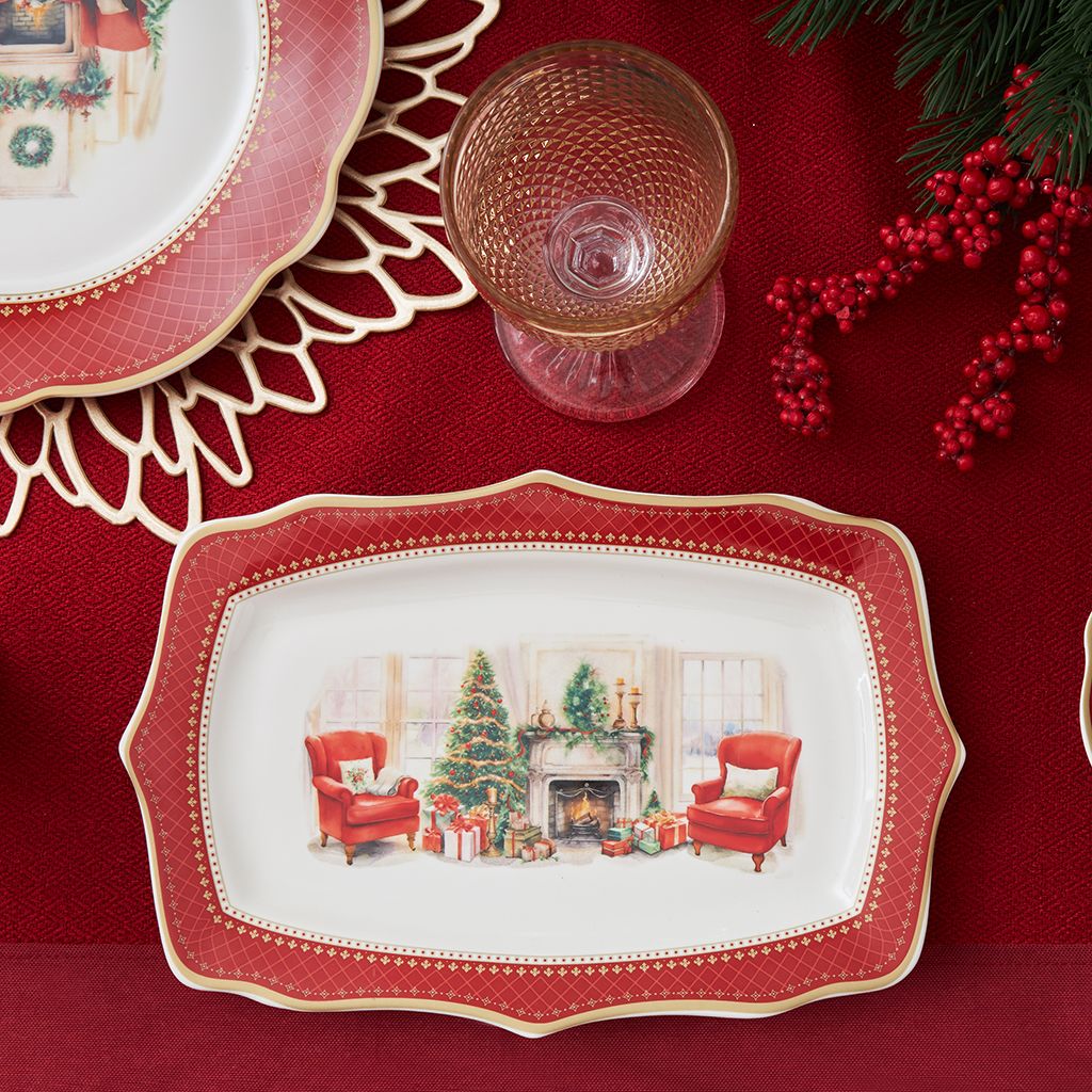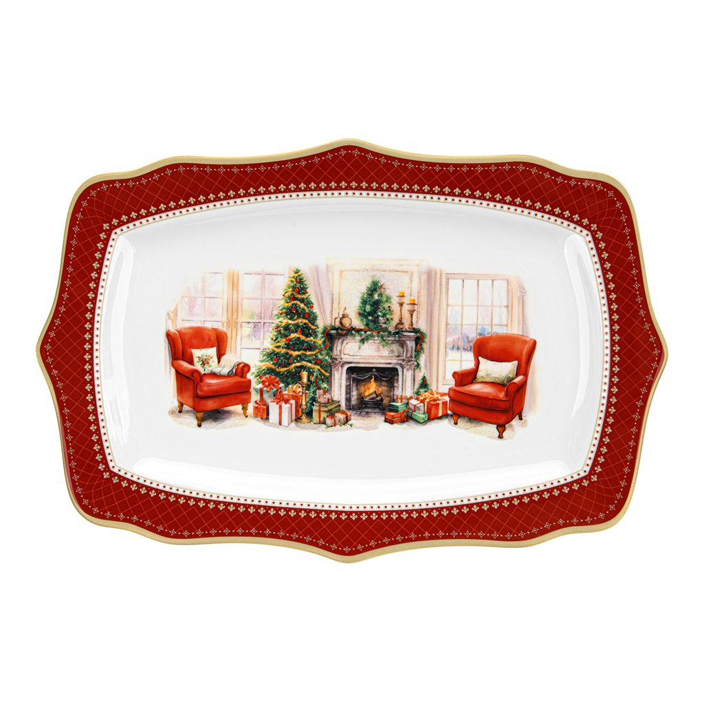 Блюдо CHRISTMAS EVE прямоугольное 28х19см цвет красный (фарфор)