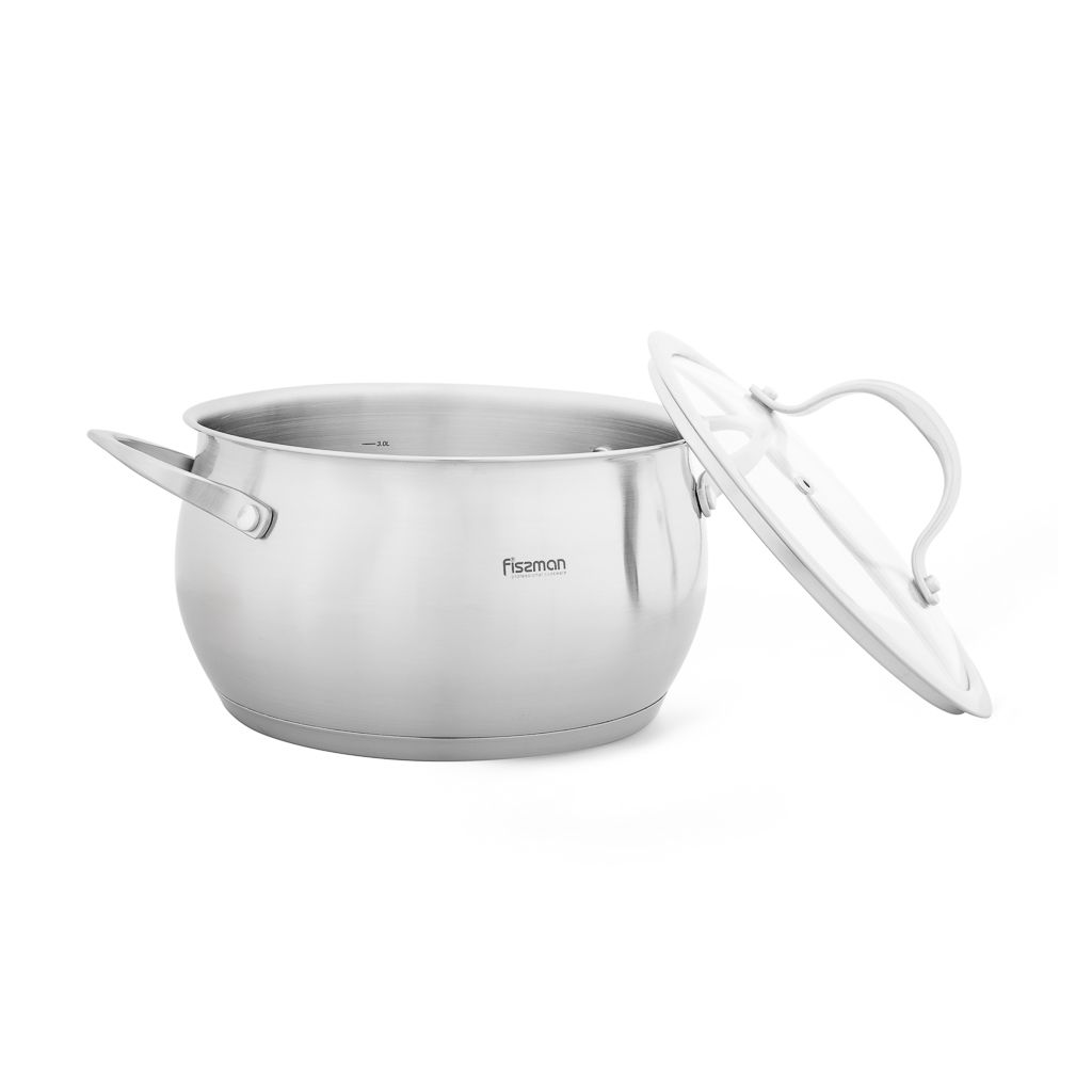Кастрюля CASSIA 20x12 см / 3,6л со стеклянной крышкой (нерж.сталь)